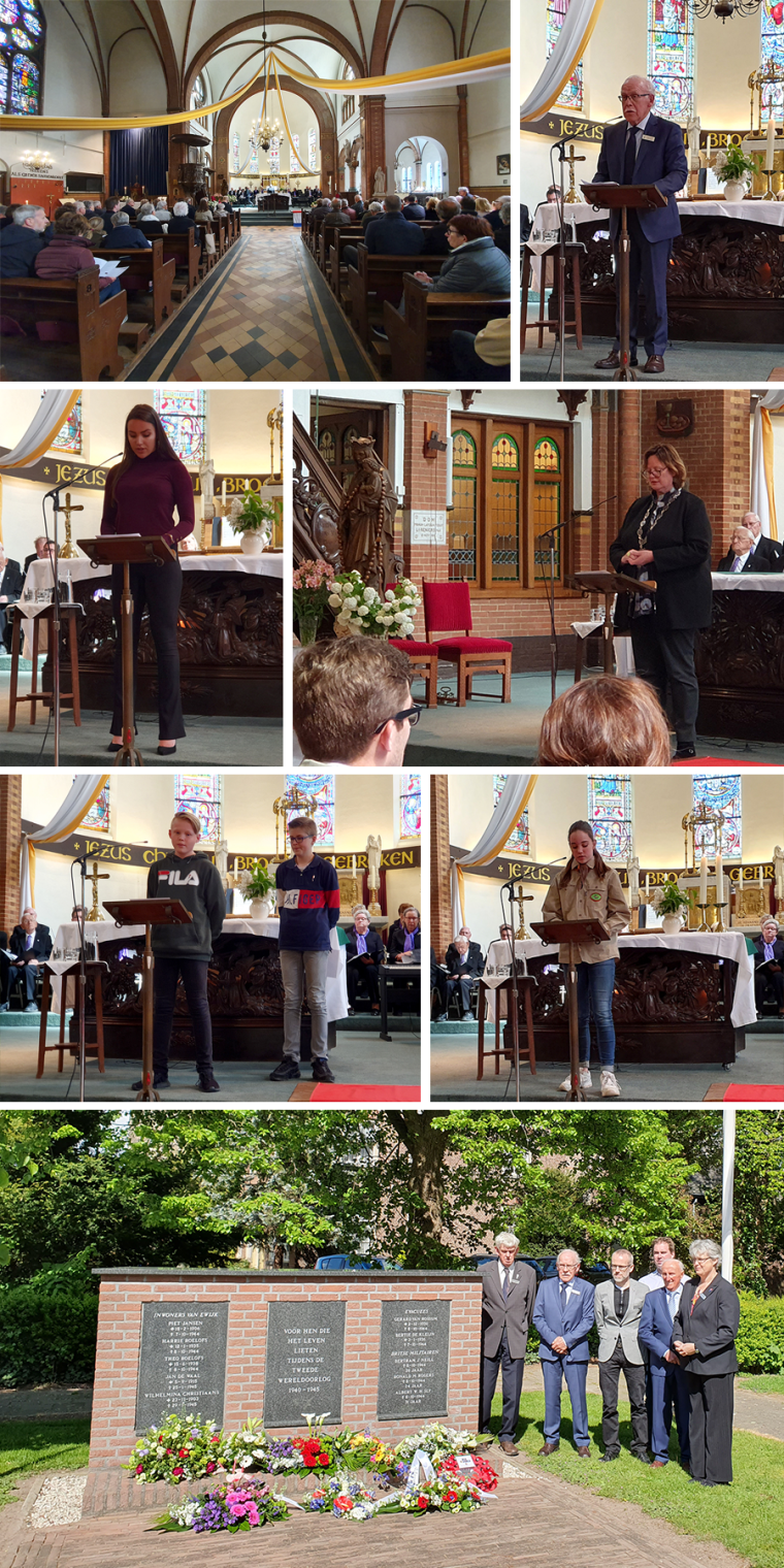 Hierna gaan de aanwezigen op eigen gelegenheid naar het oorlogsmonument bij de R.K. kerk in Ewijk, waar de herdenking wordt voortgezet. Bij de kerk houdt wethouder Plaizier een korte toespraak. Ook staan kinderen van de Reuzepas stil bij de oorlog waarna er 2 minuten stilte is. Daarna vindt een bloemlegging plaats bij het Ewijks Oorlogsmonument voor de kerk.