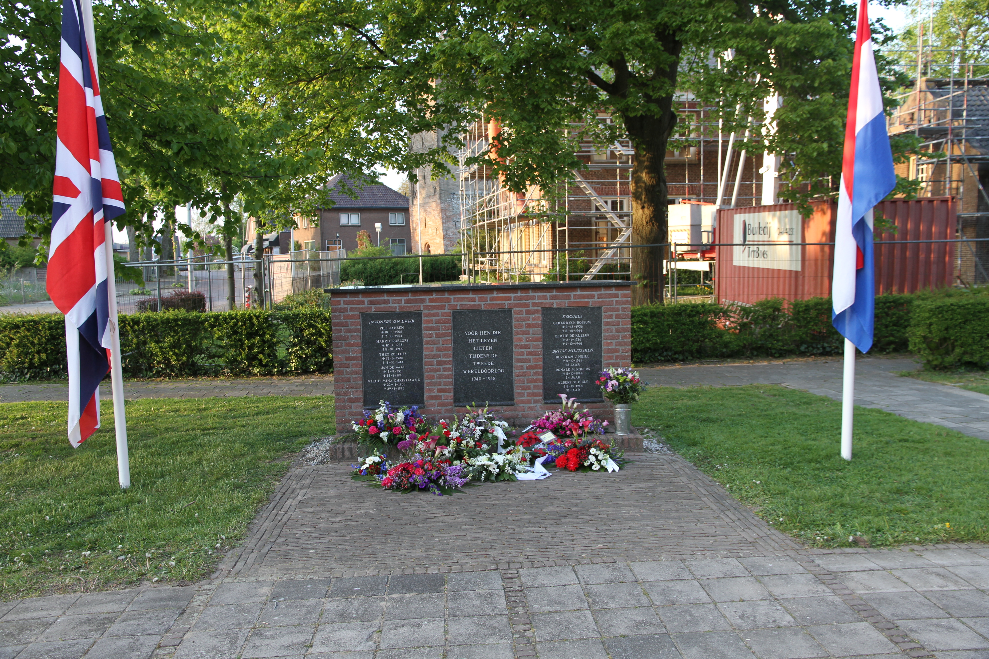 Op 8 oktober 1944 vond aan de Brugstraat in Ewijk een noodlottige explosie plaats van een Engelse brencarrier (militair voertuig). Hierbij kwamen zes mensen om het leven, zowel militairen als Ewijkse burgers. Iedere vijf jaar wordt op de plek van het ongeval stilgestaan bij alle Ewijkse slachtoffers van de Tweede Wereldoorlog. Belangstellenden zijn hierbij van harte welkom.
