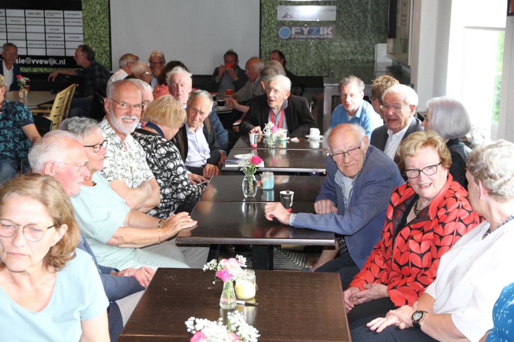 De wederom drukbezochte bijeenkomst werd afgesloten met een gezamenlijk kopje koffie.