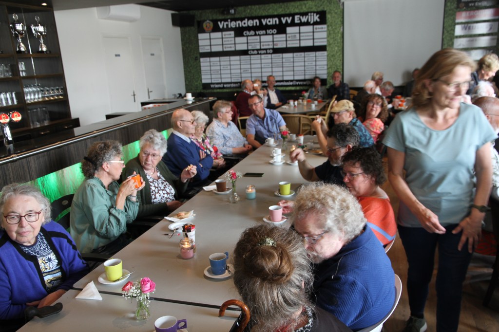 In de kantine van de plaatselijke voetbalclub kwamen zo’n 70 gasten bij elkaar die er gezamenlijk voor hebben gezorgd dat het boek ‘75 jaar vrijheid met Ewijkse oorlogsverhalen’ kon worden uitgegeven. Oorspronkelijk stond deze bijeenkomst gepland voor 5 mei 2020, maar dat kon vanwege de coronaperikelen toen niet doorgaan. Gelukkig kon de bijeenkomst nu wel doorgaan. Het gezelschap bestond uit de burgemeester, zo’n 45 geïnterviewde personen met begeleiding, de schrijvers van de verhalen, de sponsoren en het Comité 4 en 5 mei Ewijk.
